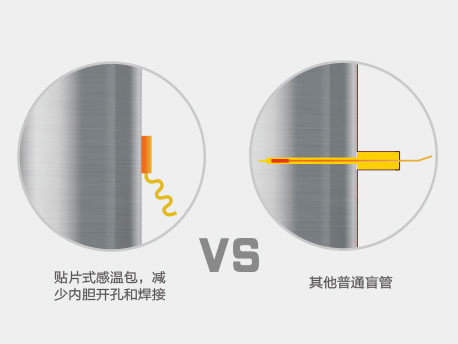 采用貼片式感溫包貼在水箱內膽上,可減少內膽體開孔和焊接,杜絕感溫盲管泄漏的隱患,水箱更可靠耐用